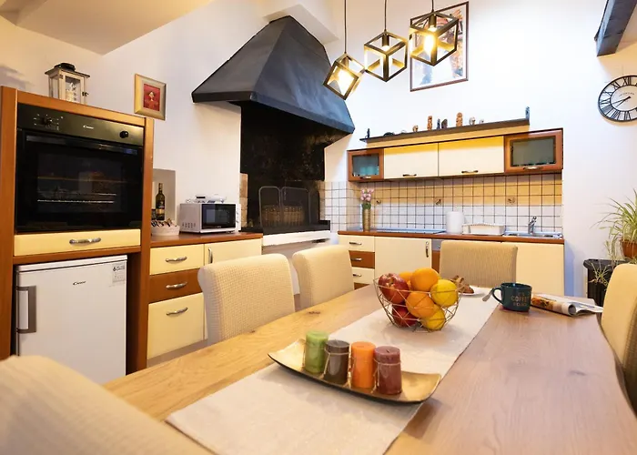 Pokoje w tym apartamencie dodatkowo zawierają wyposażoną kuchnię z piekarnikiem i zmywarką do naczyń. Od apartamentu o powierzchni 80 m² do przystanku autobusowego Ploce prawie 400 m.